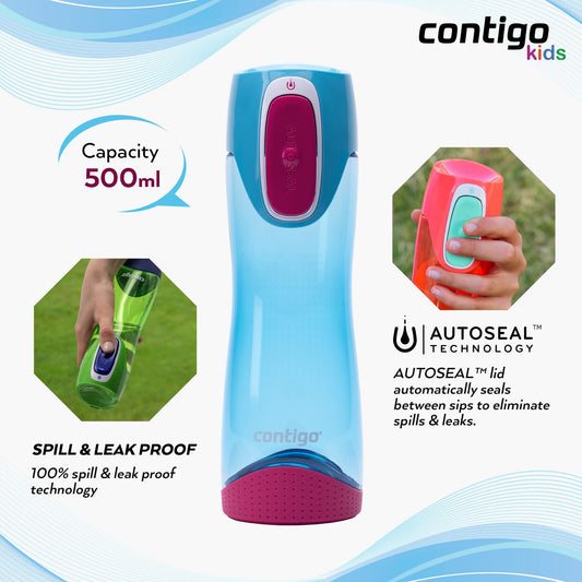 Contigo Bottiglia Acqua Swish Autoseal, 500 ml, Borraccia Sportiva grande priva di BPA, Bottiglia da Palestra a Tenuta Stagna, per lo Sport, Bicicletta, Escursioni, Blu (Skyblue)