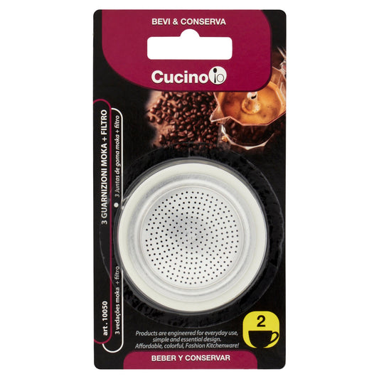 Cucino io Bevi & Conserva 3 Guarnizioni Moka + Filtro 2 Tazze