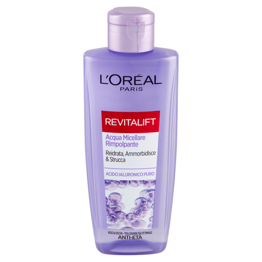 L'Oréal Paris Acqua Micellare Rimpolpante Revitalift Filler, Azione Detergente Anti-Età con Acido Ialuronico Puro, 200 ml
