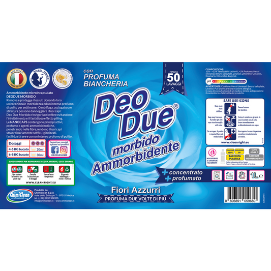 DEO DUE - AMMORBIDENTE MORBIDO FIORI AZZURRI 1 LITRO - PROFUMA BIANCHERIA FINO A 50 LAVAGGI