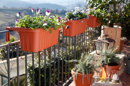 FIORIERA RONDINE CM.50 CON AGGANCI REGOLABILI E RISERVA D'ACQUA - COLORE TERRACOTTA