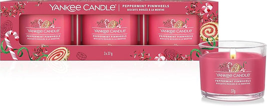 Yankee Candle - Candele votive in vetro - set da 3 - Peppermint Pinwheels