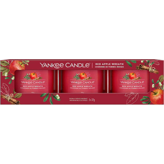 Yankee Candle - Candele votive in vetro - set da 3 - Red Apple Wreath