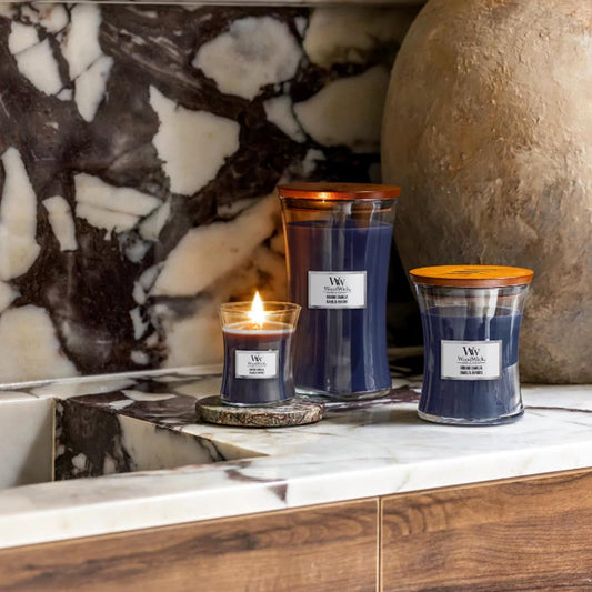 Woodwick - Candele Piccole Fireside, Coastal Sunset, Vanilla Bean