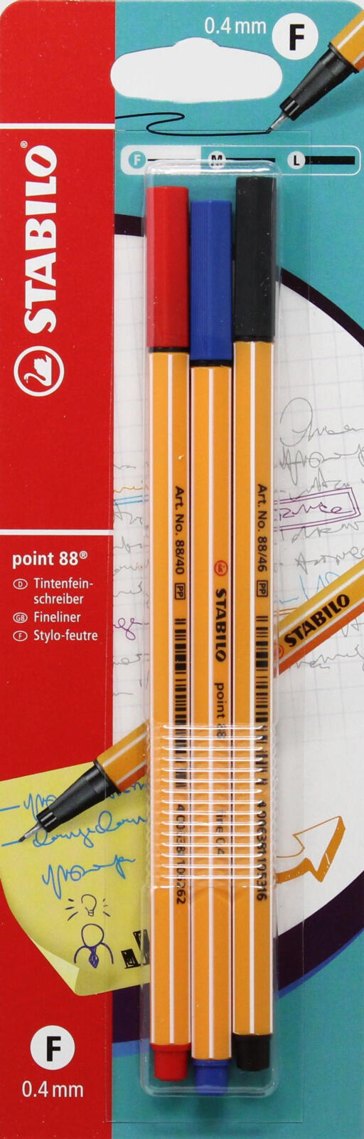 STABILO point 88 penna fineliner nero/blu/rosso - blister da 3 pz.