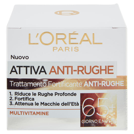 L'Oréal Paris Crema Viso Giorno e Notte Attiva Anti-Rughe, Trattamento Fortificante 65+