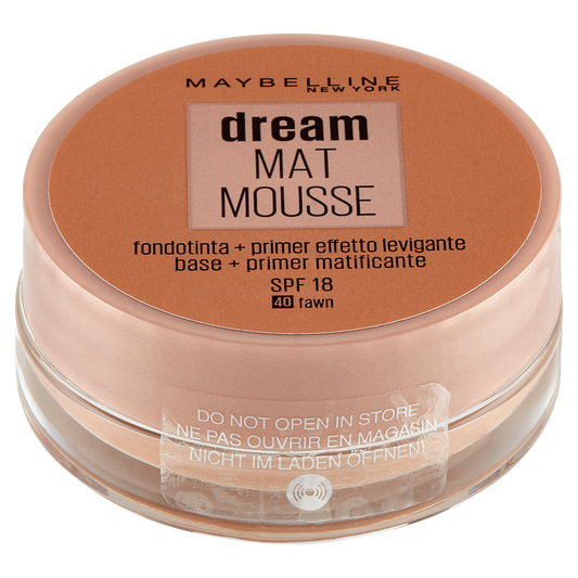 Maybelline New York Fondotinta Dream Mat Mousse, Base Opacizzante in Mousse, 40 Fawn