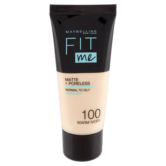Maybelline New York Fondotinta Fit Me Matte&Poreless, Finish Opacizzante, 100 Warm Ivory