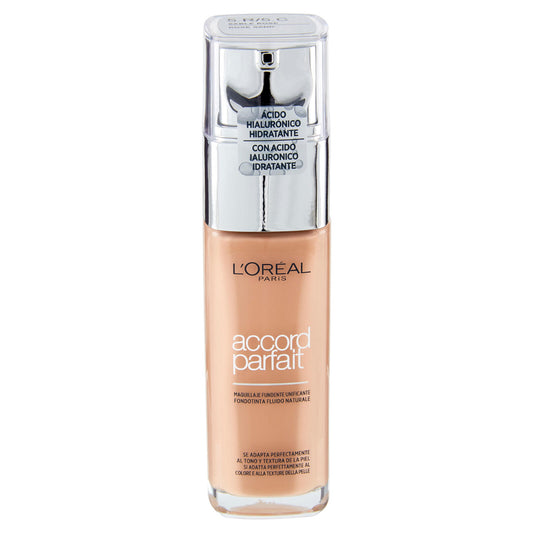 L'Oréal Paris Accord Parfait, Fondotinta Liquido con Acido Ialuronico, Sable rosé (5.R), 30 ml