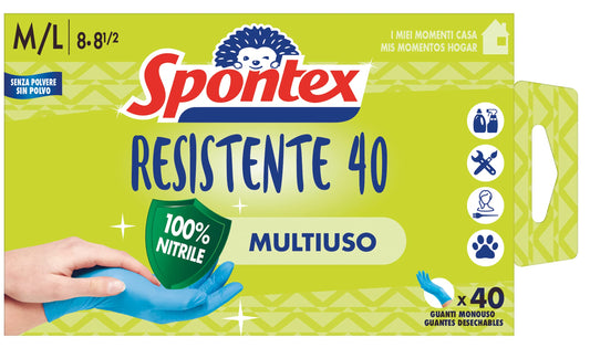 Spontex Guanti Monouso Resistente 40, Guanti in Nitrile Ipoallergenici, 40 Pezzi, Taglia M/L