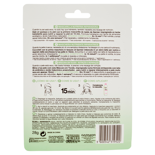 Garnier - Maschera in Tessuto Nutriente Riparatrice - Latte di Mandorla