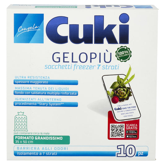 Cuki Congela Gelopiù sacchetti freezer 7 strati Formato Grandissimo 35 x 50 cm 10 pz