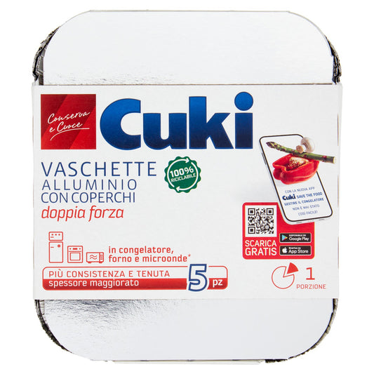 Cuki Conserva e Cuoce Vaschette Alluminio con Coperchi doppia forza 1 Porzione 5 pz