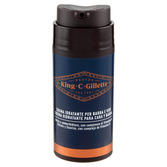 King C. Gillette Crema Idratante per Barba e Viso, con Complesso Vitamina B, 100 ml