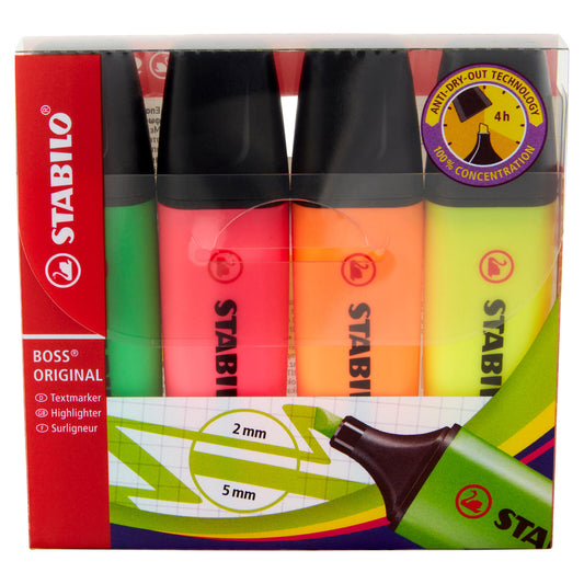Evidenziatore - STABILO BOSS ORIGINAL - Big BOSS Box Astuccio da 4 - Colori assortiti