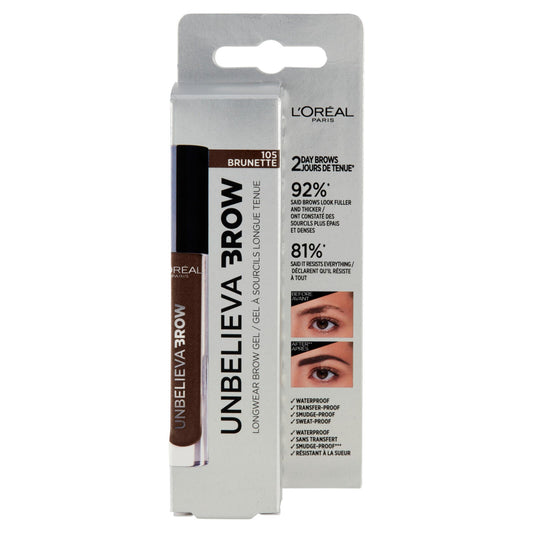 L'Oréal Paris Gel per Sopracciglia a Lunga Tenuta Unbelievabrow, Formula Waterproof, 105 Brunette