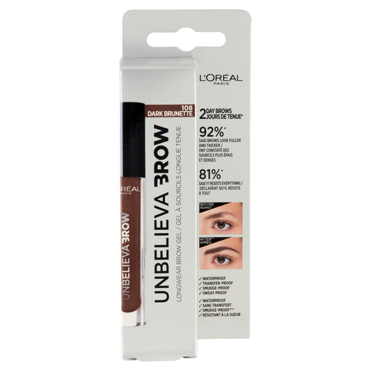 L'Oréal Paris Gel per Sopracciglia a Lunga Tenuta Unbelievabrow, Waterproof, 108 Cool Brunette