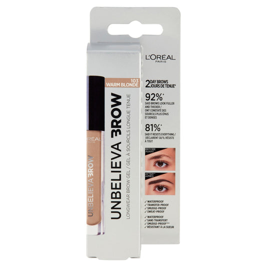 L'Oréal Paris Gel per Sopracciglia a Lunga Tenuta Unbelievabrow, Formula Waterproof, 103 Warm Blonde