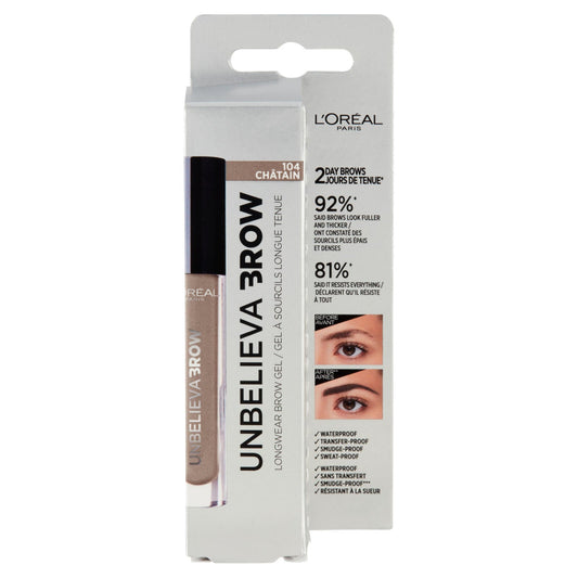 L'Oréal Paris Gel per Sopracciglia a Lunga Tenuta Unbelievabrow, Formula Waterproof, 104 Chataîn