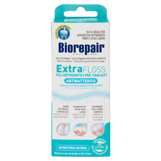 Biorepair ExtraFloss Fili Ortodontici Pre-Tagliati Antibatterico 50 pz