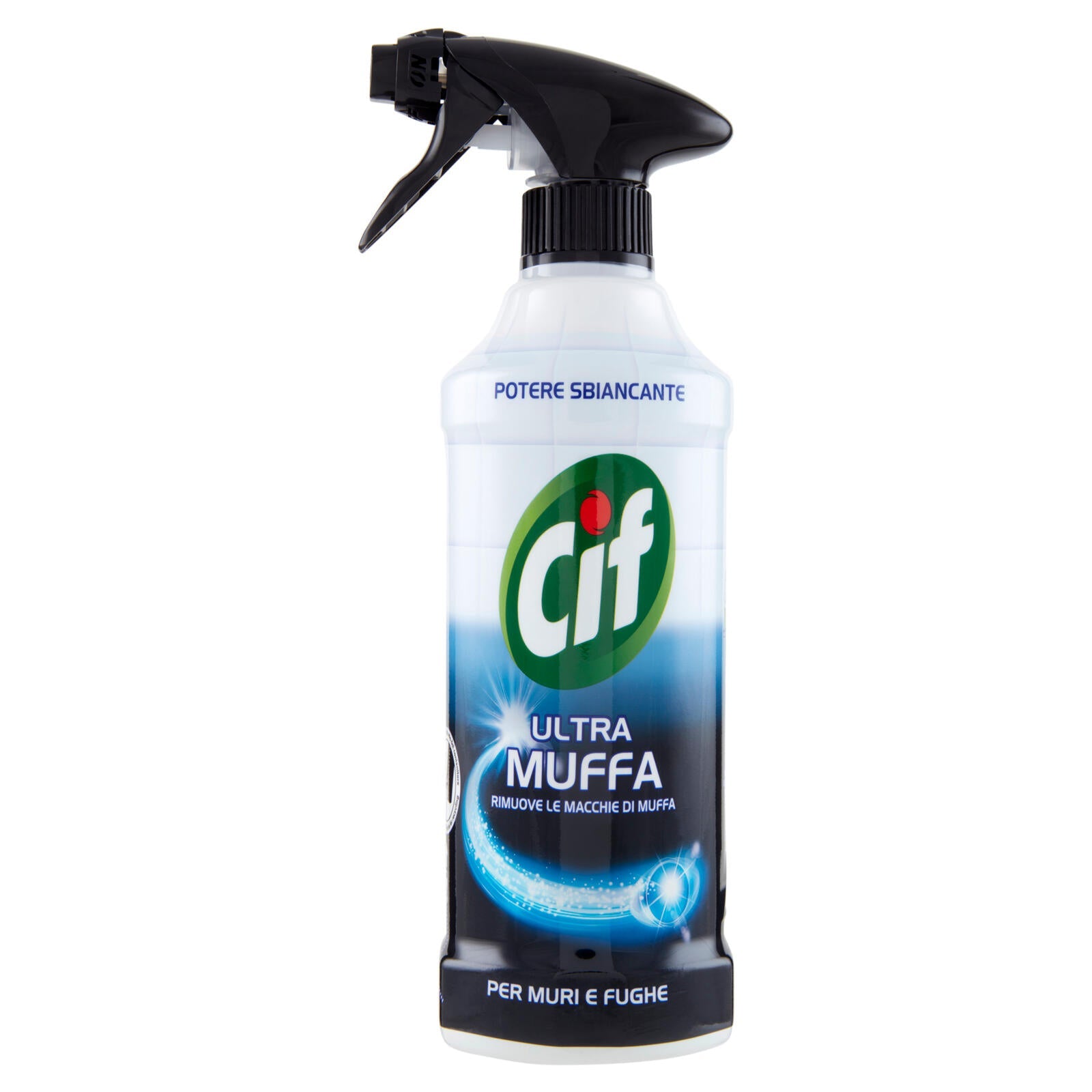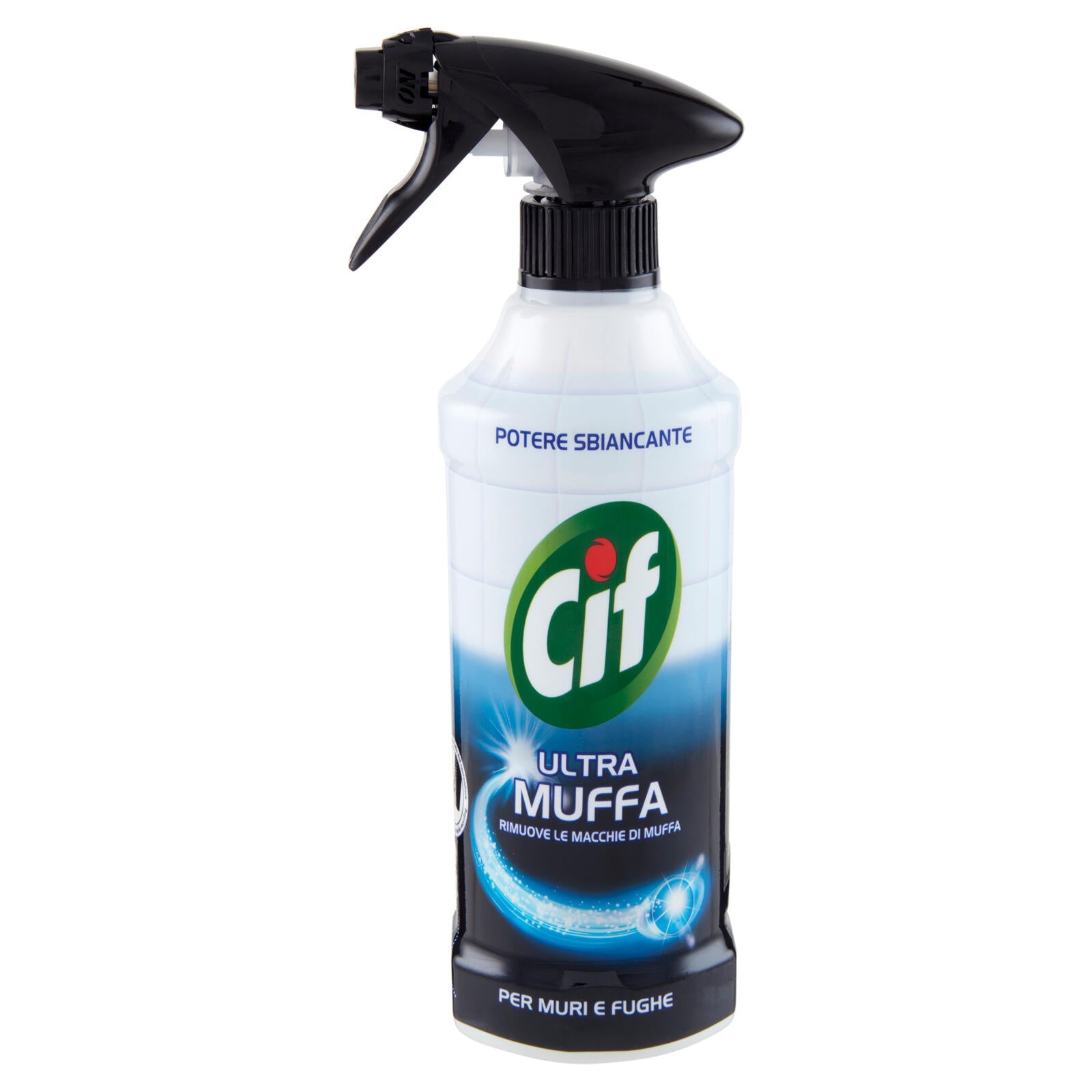 Cif Ultra Muffa è ideale per rimuovere le macchie di muffa e per sbiancare le fughe tra le piastrelle.