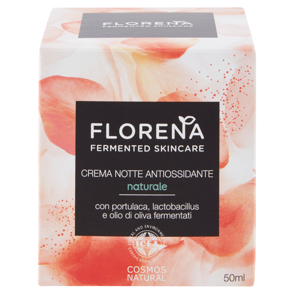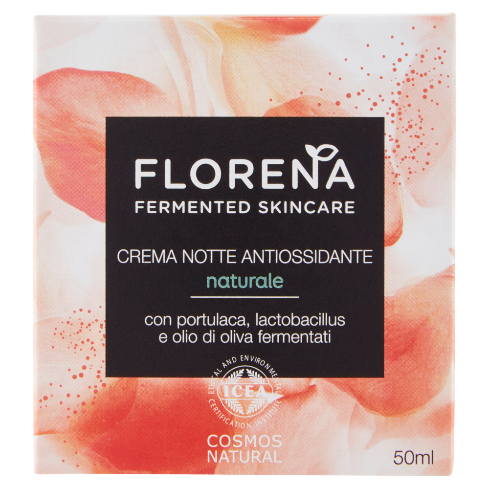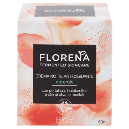 Abbiamo scelto la portulaca, il lactobacillus e l'olio di oliva fermentati per arricchire la nostra formula naturale. La nostra crema notte è ricca di omega 6 e omega 9, acidi grassi essenziali - preziosi nutrienti per la pelle. Contiene vitamina E certificata, un antiossidante naturale noto per proteggere la pelle dai radicali liberi. Durante la notte, quando la pelle è più reattiva ai trattamenti, la formula ha una potente azione antiossidante e ripristina il film idrolipidico della pelle. Ha una texture ricca e facilmente assorbibile. Per una pelle levigata, nutrita e dall'aspetto più giovane.