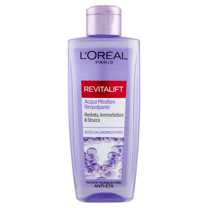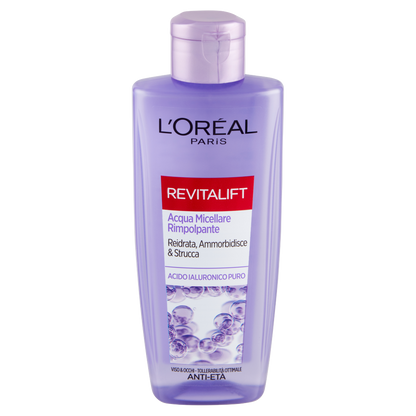 L'Oréal Paris Acqua Micellare Rimpolpante Revitalift Filler, Azione Detergente Anti-Età con Acido Ialuronico Puro, 200 ml