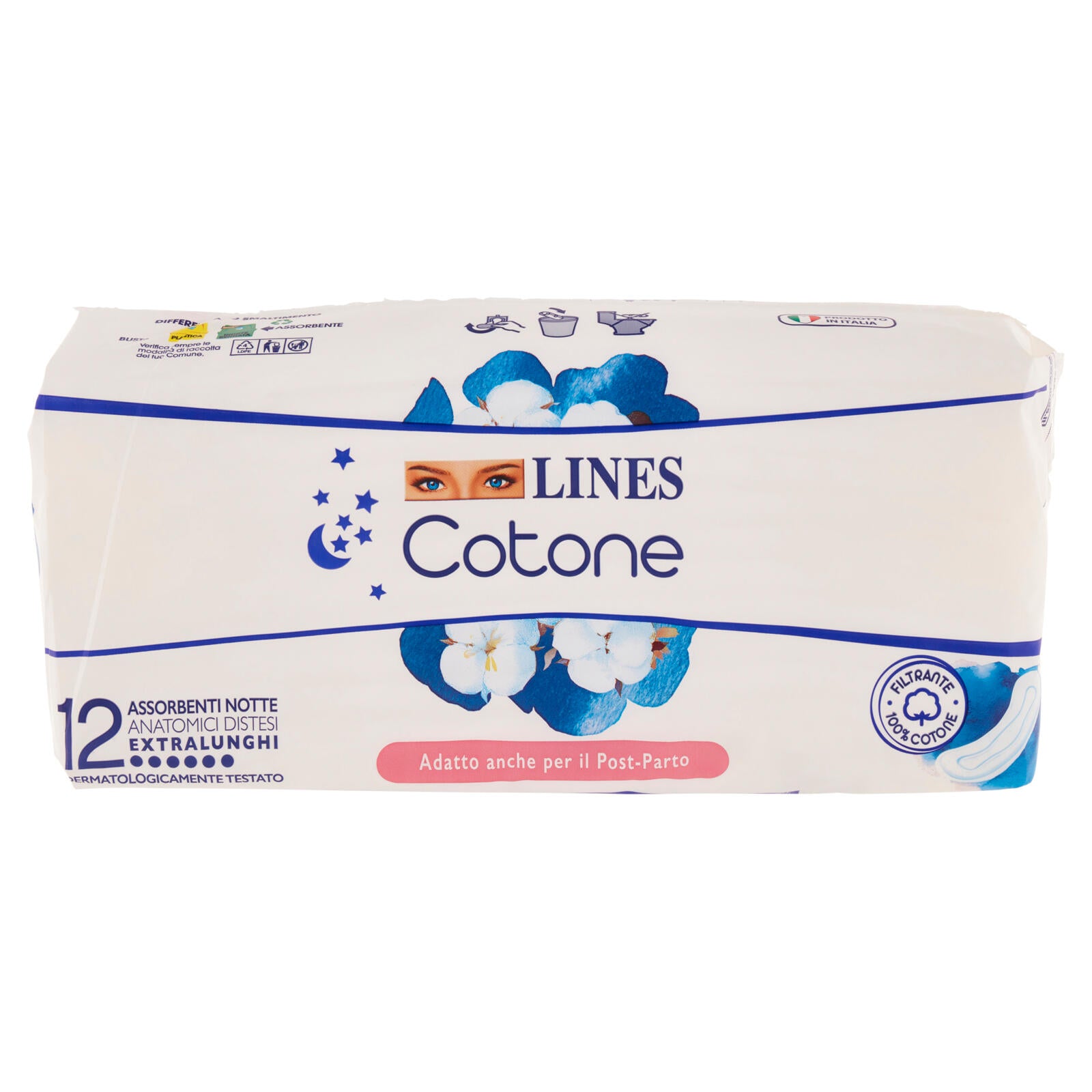 Lines Cotone Assorbenti Notte Extralunghi 12 pz