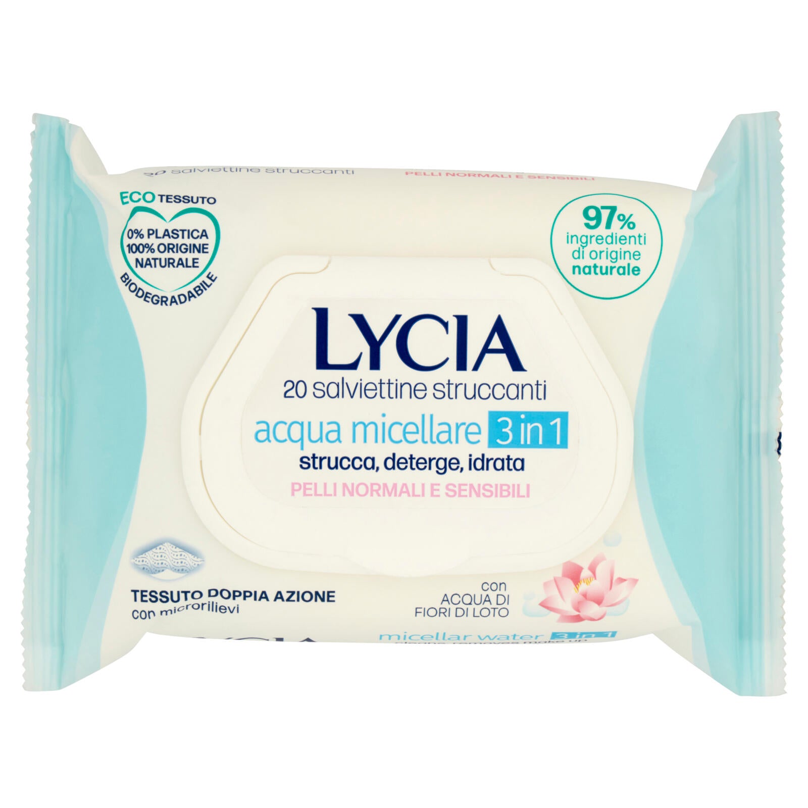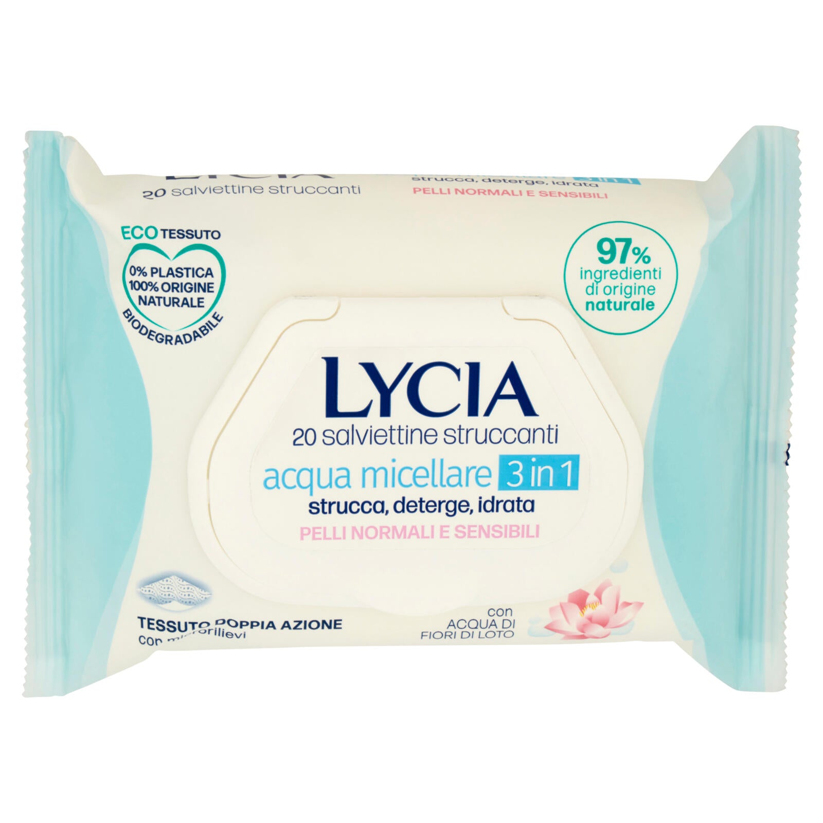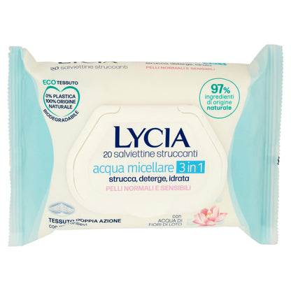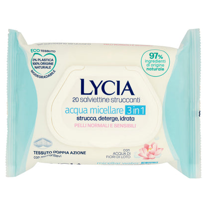 Lycia salviettine struccanti acqua micellare 3 in 1 Pelli Normali e Sensibili 20 pz