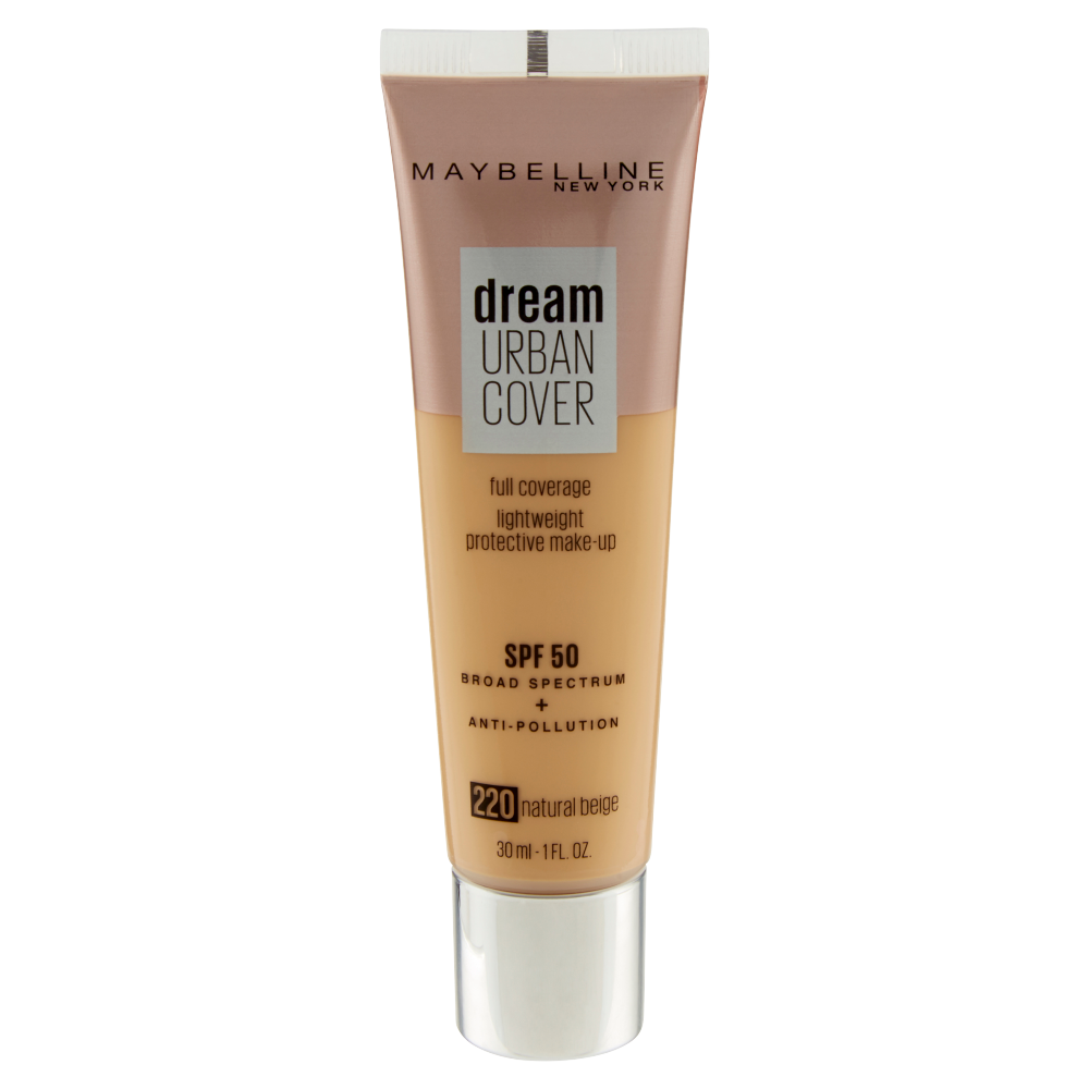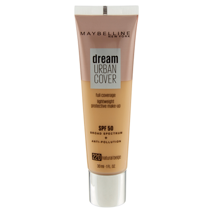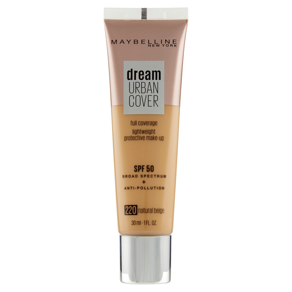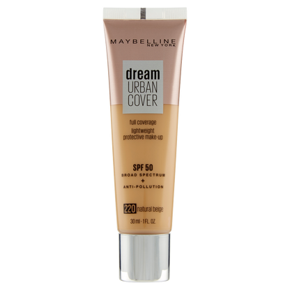 Maybelline New York Dream Urban Cover Fondotinta liquido a copertura medio-alta. Protegge dall'inquinamento. Fattore di protezione dai raggi solari SPF50. Disponibile in sei diverse nuances.